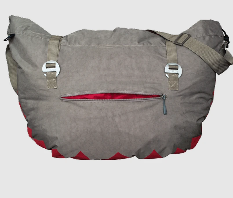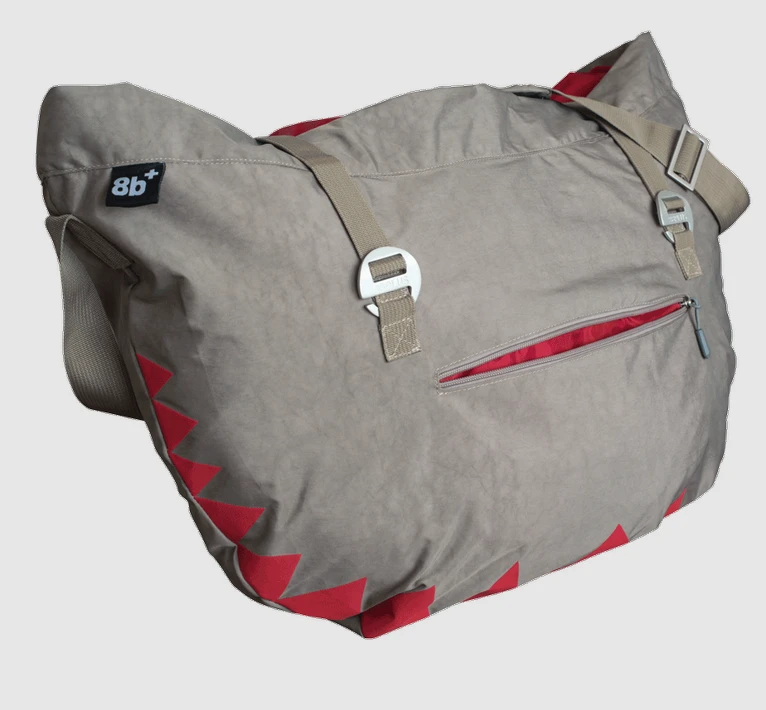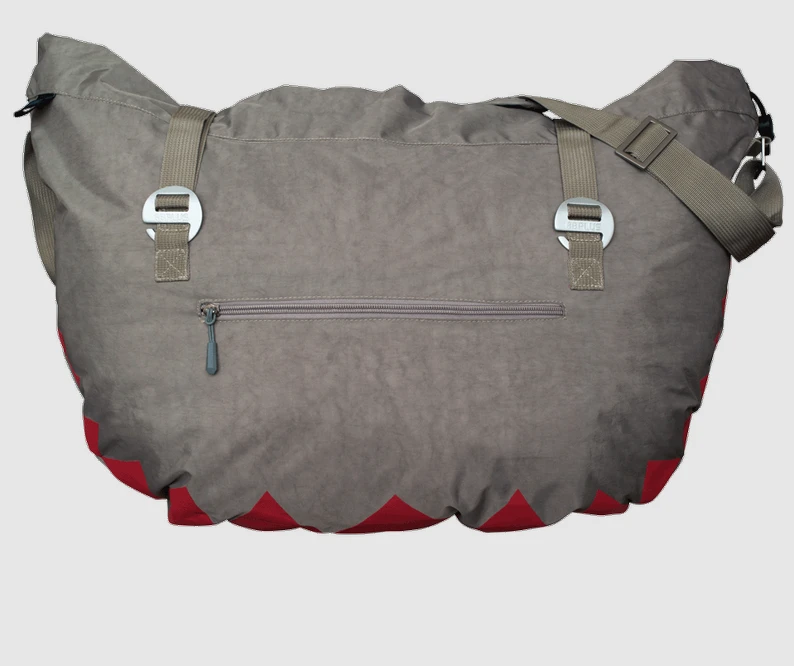 K dispozici jsou popruhy pro přizpůsobení velikosti brašny a rukojeť pro přenášení. Taška má polyuretanový povlak, který zvyšuje jeho voděodolnost.
