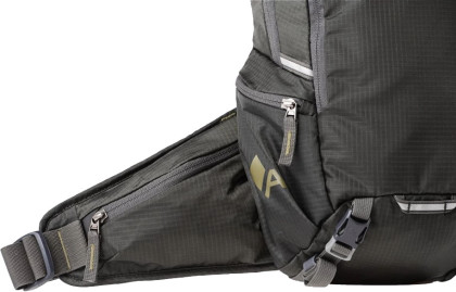 Dále na batohu najdete boční kapsy, síťovanou kapsu na drobnosti, poutka pro uchycení vodního vaku, kapsu na brýle, klíčenku.