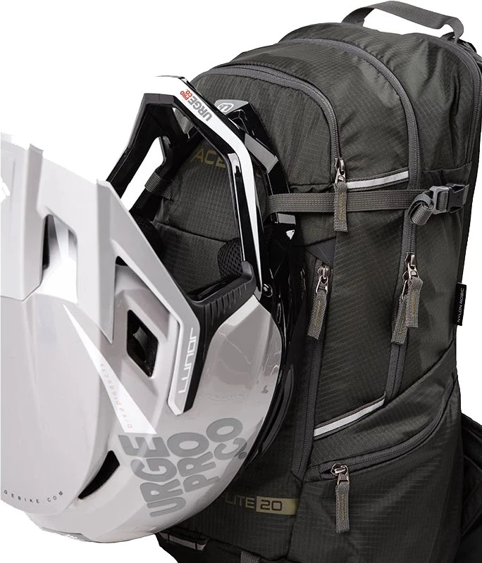 Batoh je kompatibilní se síťkou na helmu Helmet Holder (není součástí), helmu lze připevnit i pomocí popruhů na batohu, pláštěnka umístěna v samostatné zipové kapse na dně batohu, integrované horní kompresní popruhy a popruhy na dně batohu pro přichycení například spacáku.