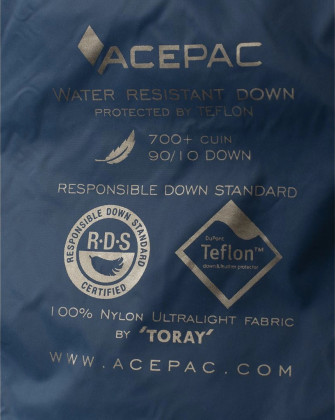 Materiály: YKK, 700+ Cuin RDS kachní peří, 10D Nylon Toray Airtastic