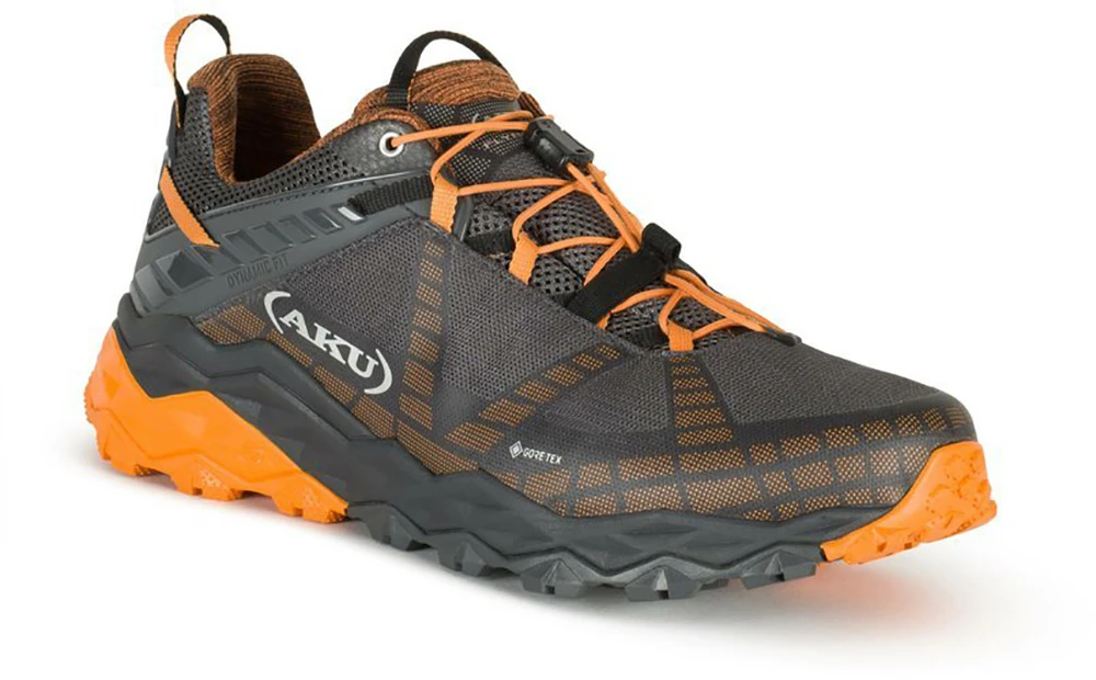 AKU Flyrock GTX – lehké turistické boty s Goretexem, který chrání obuv proti vodě. Hodí se na běžné chození, lehkou turistiku, přístup ke skalám nebo letní horskou turistiku.