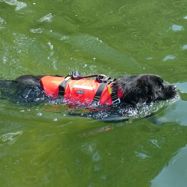 Plavací vesta má 4 držadla pro vlečení záchranářů a raněných a také pro usnadnění vytažení psa z vody na palubu lodi. Součástí je hliníkový kroužek pro zavěšení při ovládání navijáku.