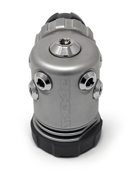 Vznikl tak kompaktní, ale zároveň robusní a spolehlivý první stupeň. Má robustní uzávěr suché komory se zesílenou membránou, která pomáhá bránit tvorbě ledu a zároveň chrání regulátor před nárazy. Tepelný výměník v okolí membrány zvyšuje teplotu dýchací směsi uvnitř 1. stupně.
