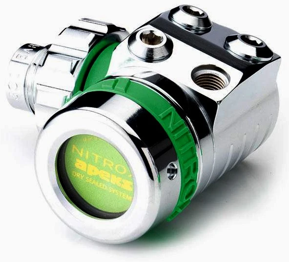 Apeks TEK3 Nitrox (L nebo R) - v setu jsou dva, pravý a levý. Tento typ potápěčských automatik je určený samozřejmě i pro chladnou vodu. Proto má maximalizovanou plochu pro zvýšenou tepelnou vodivost (obdobně jako radiátory nebo chladiče).