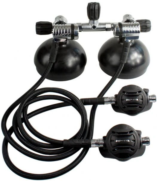 Apeks TEK3 + XTX50 set Gauge – tento set je přímo vyráběný pro potápění s dvojčaty (dá se samozřejmě použít i na dvouventil). Proto se první stupeň vyrábí v levém a pravém provedení. Hodí se do studené vody. U obou druhých stupňů jde rukou, tzn. i pod vodou upravit nádechový odpor dle vaší aktuální potřeby. Součástí je závěs druhého stupně na krk a dvě hadice, jedna o délce 0,75 m a druhá o délce 2,1 m pro technické potápěče a stísněné prostory a manometr.