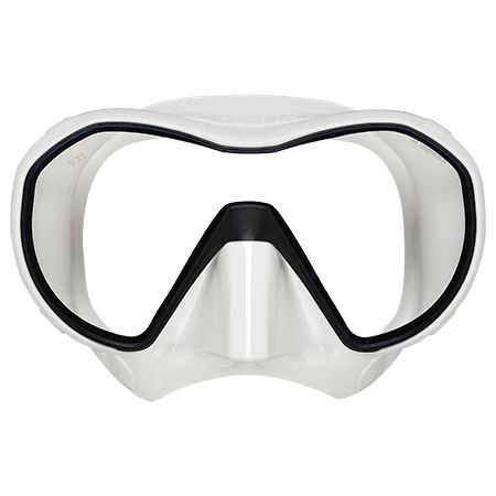 Potápěčská maska Apeks VX1 Pure Clear – má se silikonovou lícnicí, dobře vám přilne ke tváři a nebude dovnitř propouštět vodu. Má bezrámečkovou konstrukci, malý vnitřní objem a široký zorník s dobrým výhledem.