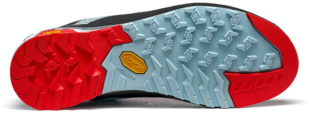 Vibramová podrážka má tři díly, které tlumí nárazy a přitom zajišťuje torzní tuhost i životnost podrážky. Špice boty je uzpůsobená na lezení. Vzorek je navržený aby dobře držel při sestupu.