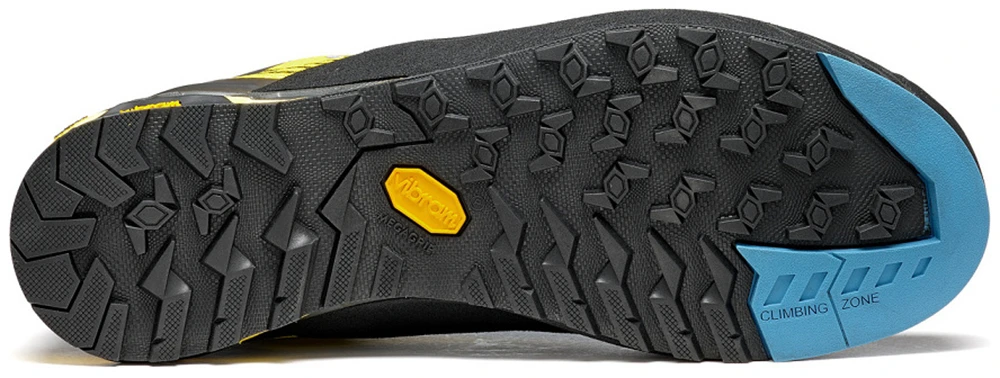 Vibramová podrážka má tři díly, které tlumí nárazy a přitom zajišťuje torzní tuhost i životnost podrážky. Špice boty je uzpůsobená na lezení. Vzorek je navržený aby dobře držel při sestupu.