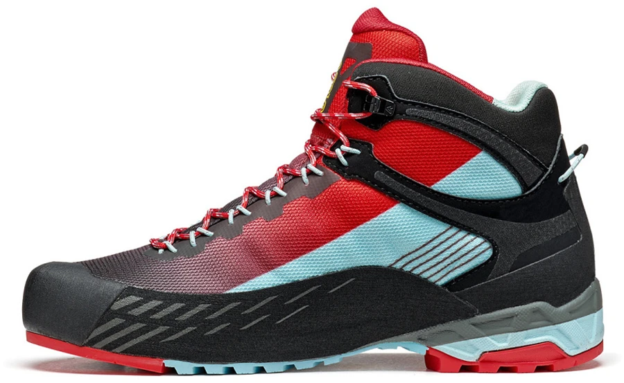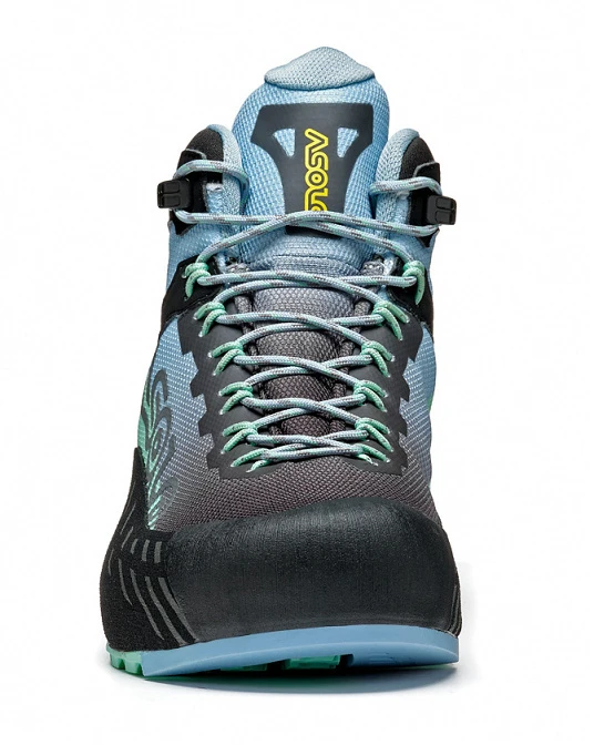 Asolo Eldo Mid GV ML – dámské trekové boty vhodné do náročného horského terénu. Špice boty je uzpůsobená na lezení, šněrování bot je protažené do předu. Oceníte je na nezpevněných cestách, v lese, přístupu ke skalám, na ferratách a obdobném terénu. Jsou relativně měkké a hodně pohodlné. Proto se hodí do našich podmínek, do Krkonoš, na nižšší alpské vrcholy, kde se pohybujete na pěšinkách bez převahy kamenů.