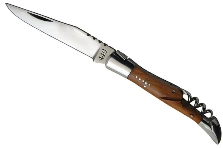 Baladeo DUB1045: zavírací nůž z oceli 440 s vývrtkou. Rukojeť nože je z olivového dřeva. Hodí se na každodenní použití. Nechybí ani oblíbená vývrtka na víno.