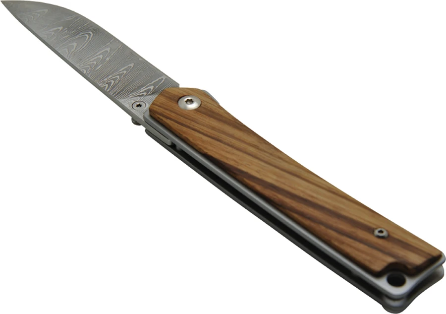 Čepel je vyrobena z nerezové oceli, ale má povrchovou úpravu připomínající damašek. Má čep na jednoruční otvírání. Rukojeť je z exotického dřeva. Součástí je i spolehlivá pojistka liner lock.