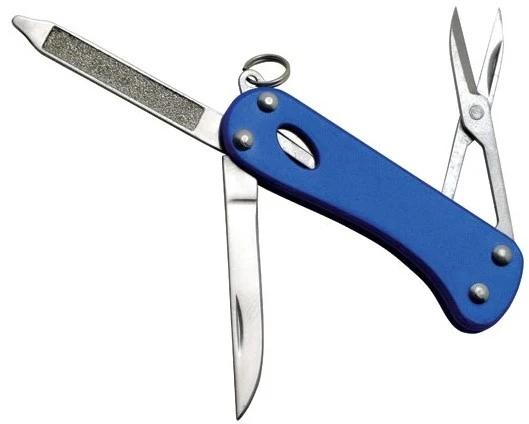 Přehled funkcí: nůž, nůžky, pilník na nehty, čistič nehtů, plochý šroubovák