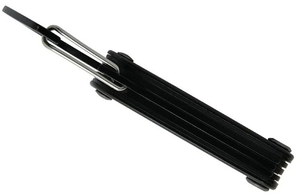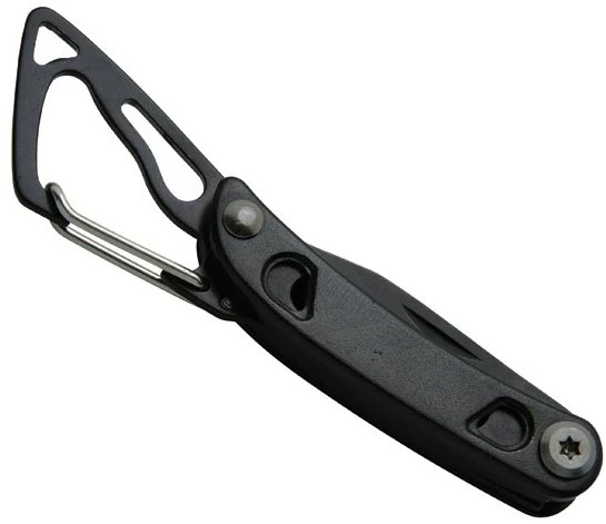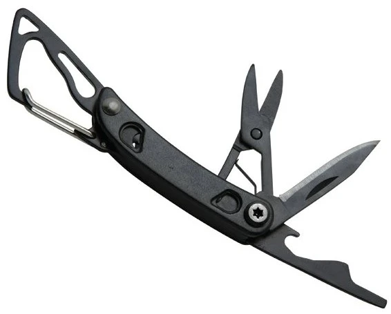 Přehled funkcí: nůž, plochý šroubovák, nůžky, otvírák lahví, karabinka