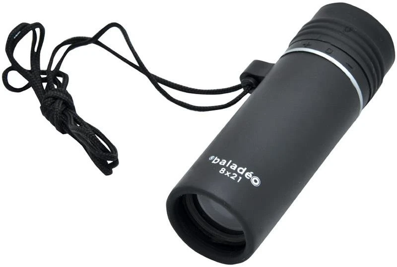 Baladéo Foco Monokulár 8×21 – kapesní monokulár se zvětšením 8× je určen zejména pro turistiku a cestování. Vrstvené čočky poskytují výborný pohled i za horší viditelnosti, gumou potažené kovové tělo pak usnadňuje úchop.