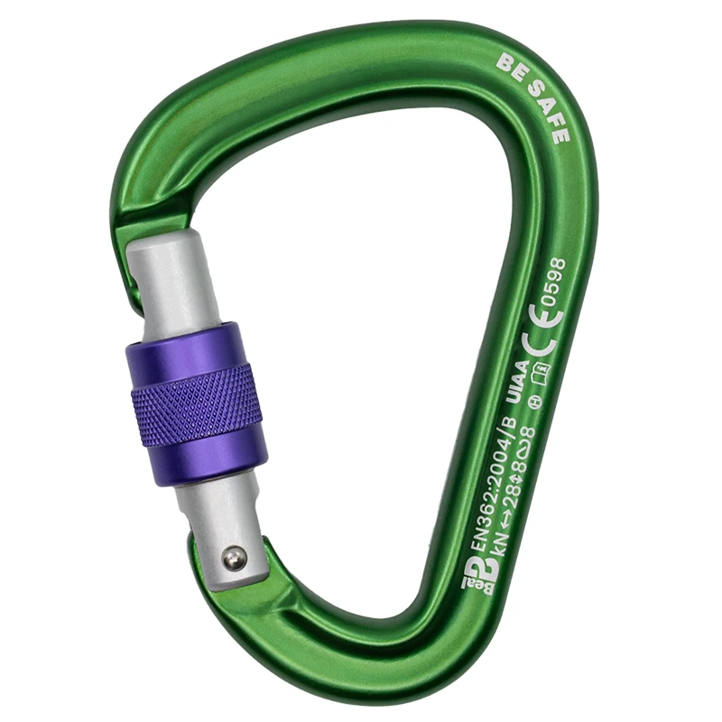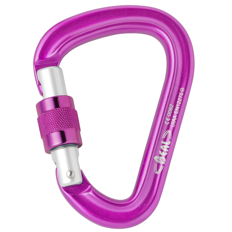 Beal Be Safe: je standardní šroubovací karabina ve tvaru HMS se šroubovací pojistkou, kterou využijete při lezení na odsedku nebo do jistítka. Ale je možné ji využít i do smyček, na postupové jištění, kde chcete mít jistotu, že se nevycvakne.