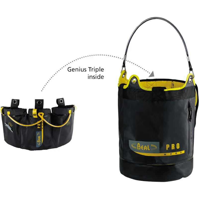 Beal Bucket - je bytelný pracovní vak na pracovní vybavení pro práce ve výškách. Lze snadno připojit k postroji pomocí karabiny.