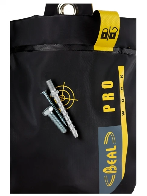 Tento pracovní vak je určený pro výškové práce na drobnosti, které k práci potřebujete, hřebíky, šroubky… Jedná se vlastně o velmi pevnou a relativně objemnou technickou kapsu.