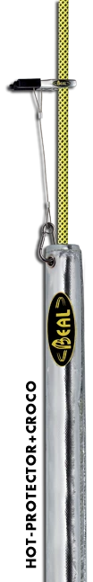 Chránička lana Beal Hot Protector 70 cm II: je vyrobena ze skelných vláken a hliníku. Chrání tak lano před teplem (sváření, plamen pájecí lampy, jiskry z brusky) a samozřejmě také před opotřebením od tření o ostré hrany. Má inovativní zapínání na magnety.