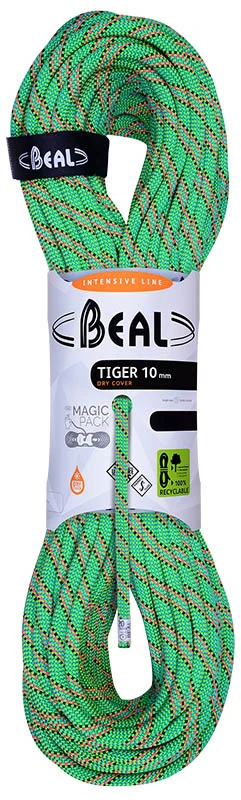 Lezecké lano Beal Tiger 10 mm Unicore – s průměrem 10 mm, který znamená solidní životnost a s impregnací opletu proti navlhnutí opletu - Dry Cover. Tato úprava kromě nenasákavosti zvyšuje životnost a použitelnost.