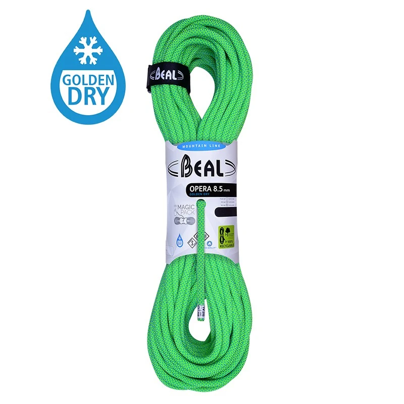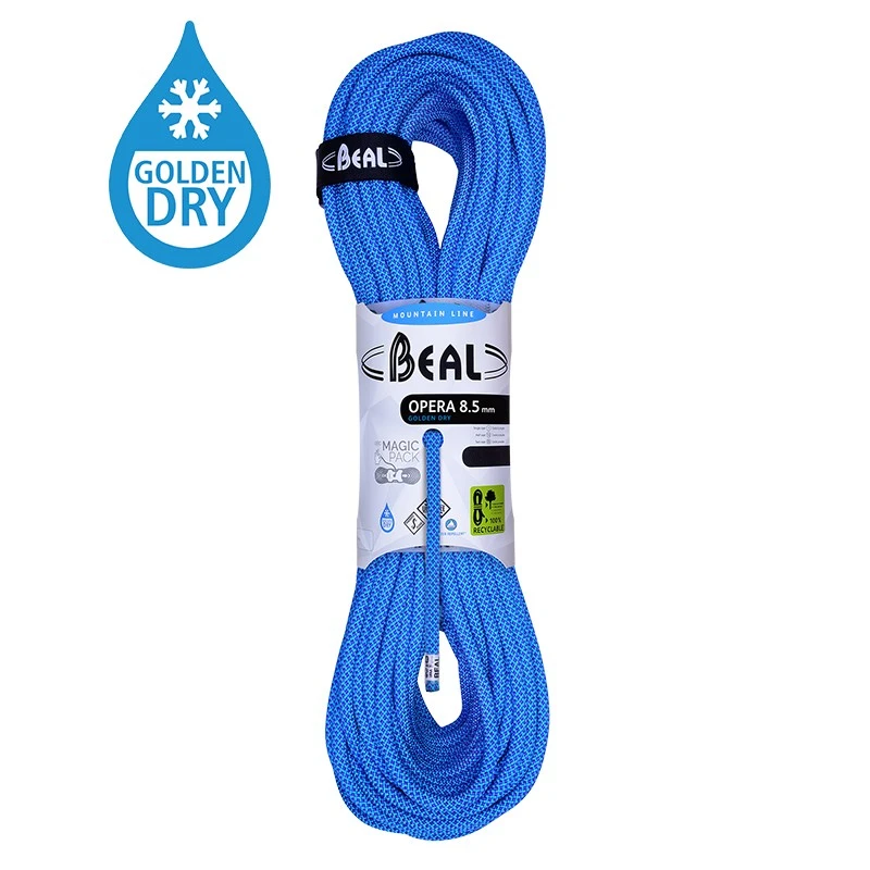 Beal Opera 8,5 mm Unicore Golden Dry – aktuálně nejlehčí jednoduché horolezecké lano na trhu. Navíc je certifikované jako jednoduché lano, alei i půlka a dvojče, proto jde využít i v horách. Neskutečná váha 48 g/m. Hodí se na velmi těžké sportovní cesty. Není vhodné na nacvičování.