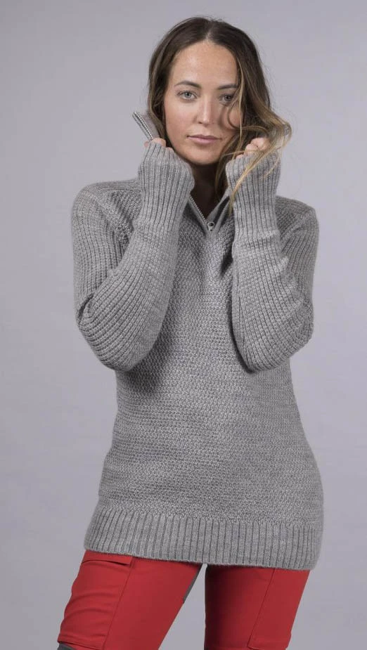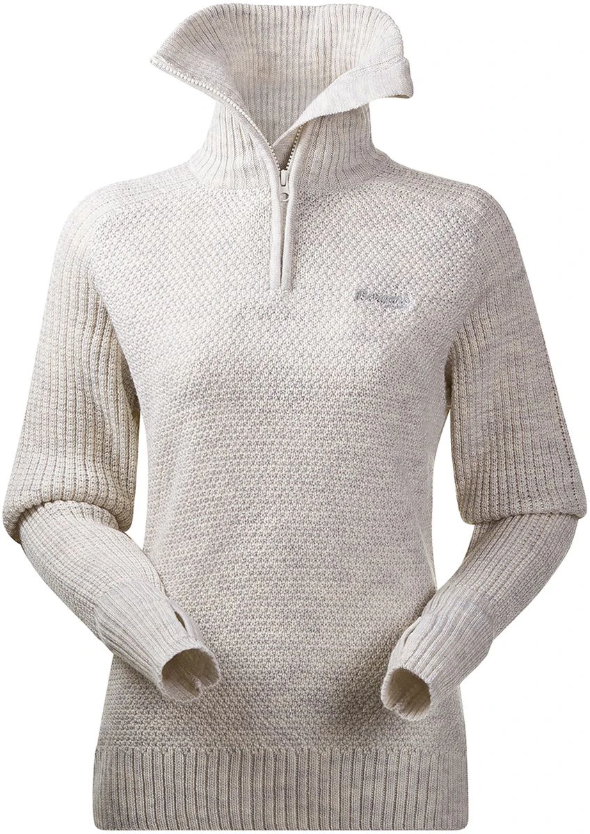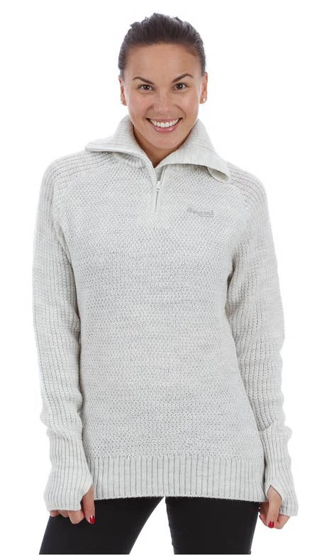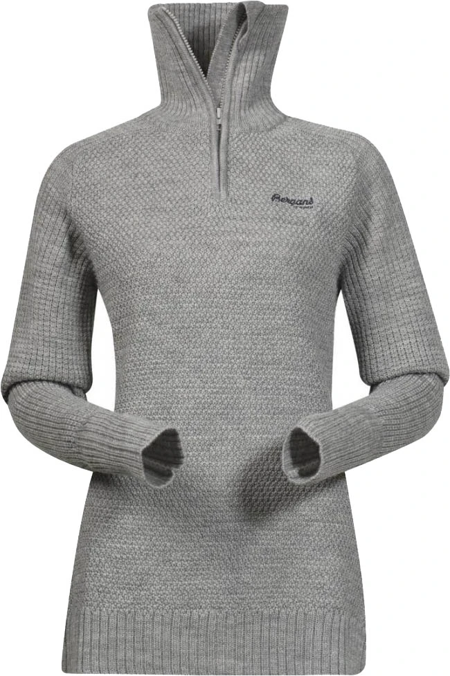 Bergans Ulriken Lady Jumper: je dámský, středně silný vlněný svetr univerzálního střihu, který se hodí na různé příležitosti. Svetr je vyroben ze 100% vlny Merino, je velmi teplý a zároveň prodyšný, má vysoký límec se zipem a otvory pro palce.