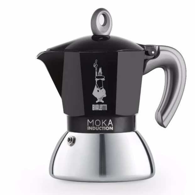 Bialetti Moka Induction černá: Klasická hliníková moka konvička v upraveném provedením vhodném na indukční desky. Můžete si tak vychutnat své oblíbené překapávané espresso i ve vaší moderní kuchyni. Černá verze se sofistikovanou elegancí vnese do vaší kuchyně kromě vůně kávy i působivý šarm.