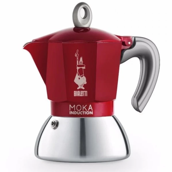 Bialetti Moka Induction červená : Klasická moka konvička na espresso kávu v inovativním provedením vhodném na indukční desky. Můžete si tak vychutnat svou oblíbenou překapávanou kávu jako z kavárny, i u vás doma. Odvážná červená barva, vnese do vaší kuchyně vůni čerstvé kávy a elegantní extravaganci.