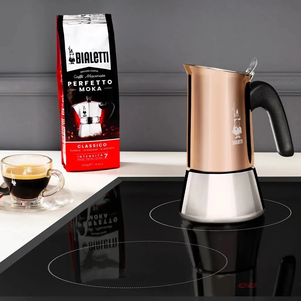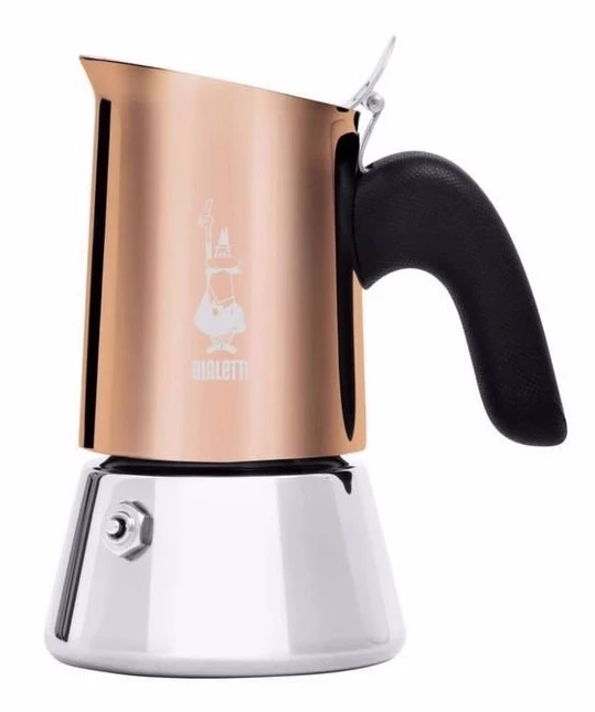 Bialetti Moka Venus na 4 šálky měděný : Tradiční Italská moka konvička na přípravu překapávané espresso kávy. Konvička Venus je vhodná na všechny typy vařičů, a to i na indukci. Její designový elegantní vzhled vás hned na první pohled zaujme.