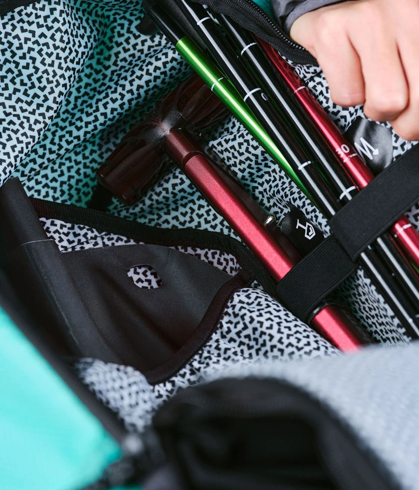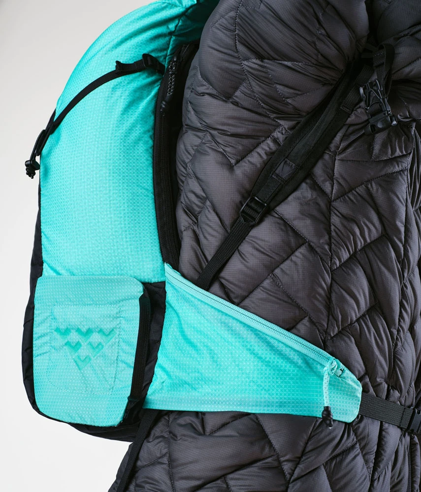 V hlavní komoře jsou poutka na lavinovou výbavu, kapsa na vodní vak a menší kapsička na cennosti a klíče. Z vnější strany je možnost uchycení lyží (diagonální D-fix) a připnutí jednoho cepínu a praktická samostatná boční kapsa na uložení maček.