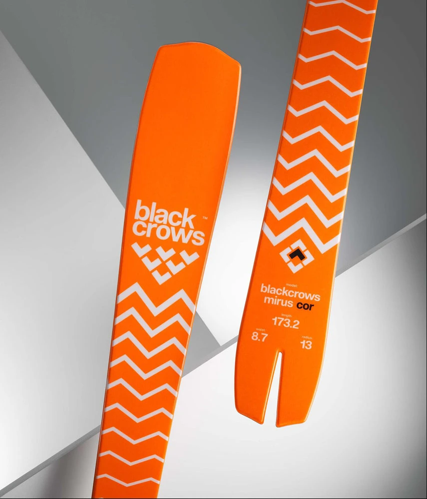 Black Crows Mirus Cor – jsou univerzální sjezdové lyže, které jsou určené na sjezdovku i do freeridu nebo na skialpinismus. Jsou u nich zachované jedinečné jízdní vlastnosti. Je u nich velmi krátký rádius 13 m pro parádní krájení oblouků. Ve spojení s twintipem a rozdvojenou patkou tě nabádá k jízdě na hraně.