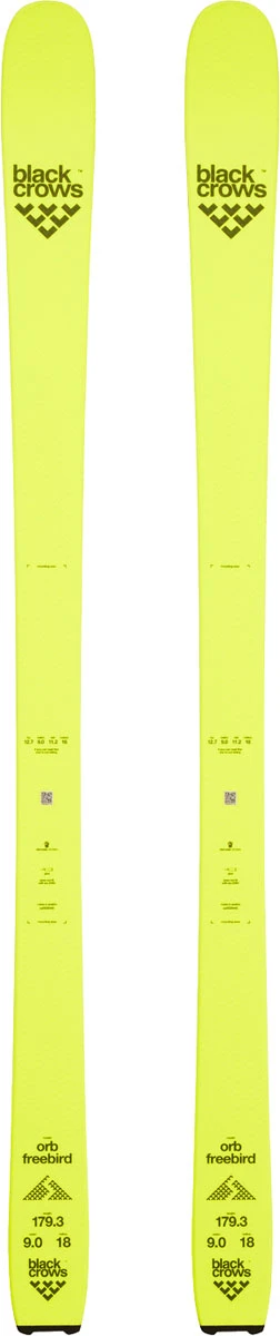 Black Crows Orb Freebird – lyže pro skialpinismus a obtížné freeridové ježdění. Mají dřevené jádro s laminátovými a karbonovými vlákny a titanalovou podložku pod vázáním, to jim dává stabilitu při jízdě a jistotu, že nevytrhnete vázání v nejméně vhodné chvíli. Black Crows Orb Freebird jsou určené do sjezdů, kde se musíte na lyže spolehnout.