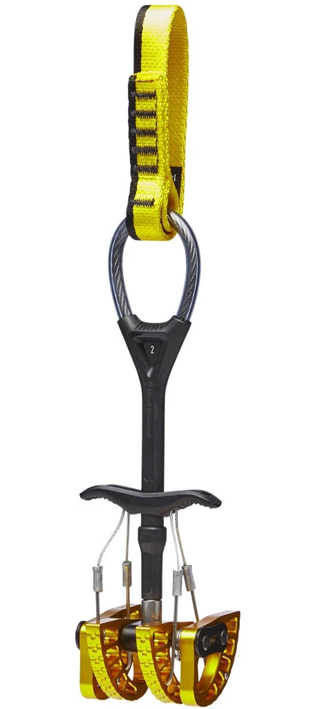 Black Diamond Camalot C4 2: dvouosý friend vhodný do trhlin nebo spár střední velikosti. Jejich konstrukce má zdvojenou smyčkou, která umožňuje variabilní prodloužení.