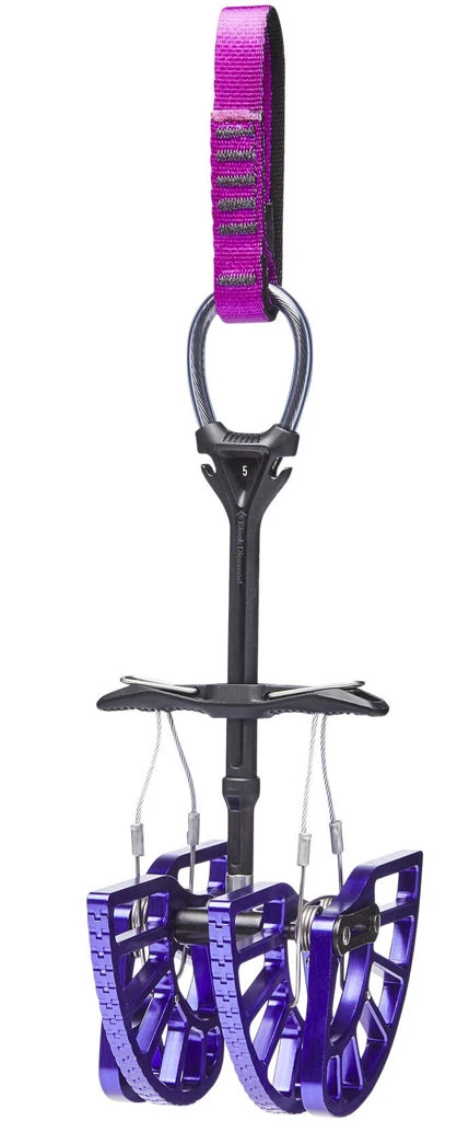 Black Diamond Camalot C4 5: dvouosý friend vhodný do opravdu širokých spár. Jejich konstrukce má zdvojenou smyčkou, která umožňuje variabilní prodloužení.