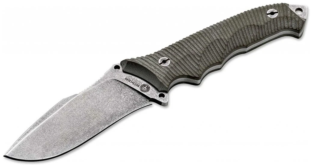 Boker Arbolito Buffalo Soul 42 Micarta – je moderní nůž s pevnou čepelí pro myslivce, lovce nebo rybáře. Čepel je vyrobená z nerezové oceli N695, která je odolná proti opotřebení, vyštípání zubů atd. Má výrazný výbrus. Čepel prochází celým nožem, má konstrukci full tang, takže je velmi stabilní a odolný.