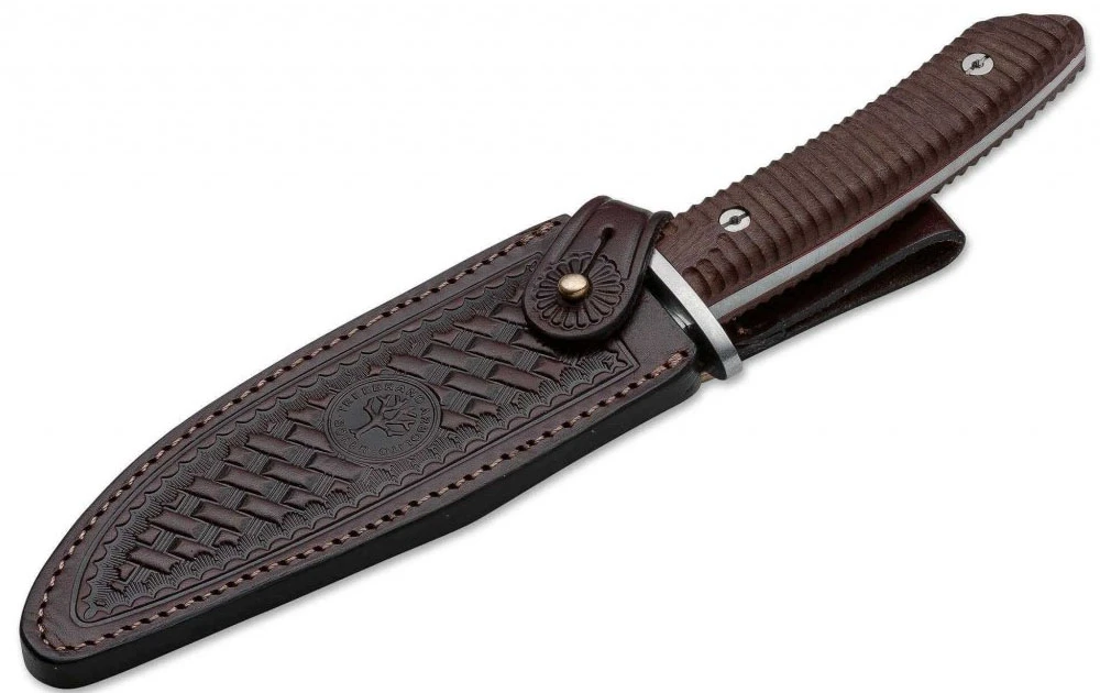 Boker Arbolito Esculta Ebony – je lovecký nůž s pevnou čepelí tradičního designu. Jeho vhodný pro lovce, myslivce, milovníky bushcraftu. Čepel je robusní, z nerezové oceli N695, která je odolná proti opotřebení, vyštípání zubů atd. Povrchová úprava je Stonewash. Čepel prochází celým nožem, má konstrukci full tang, takže je velmi stabilní a odolný.