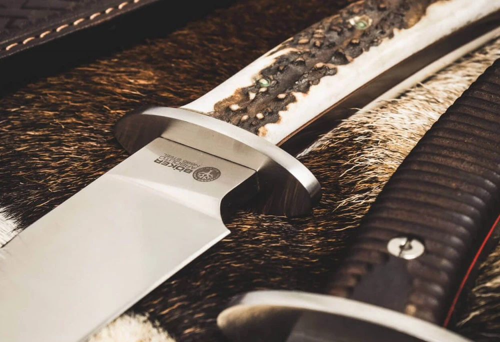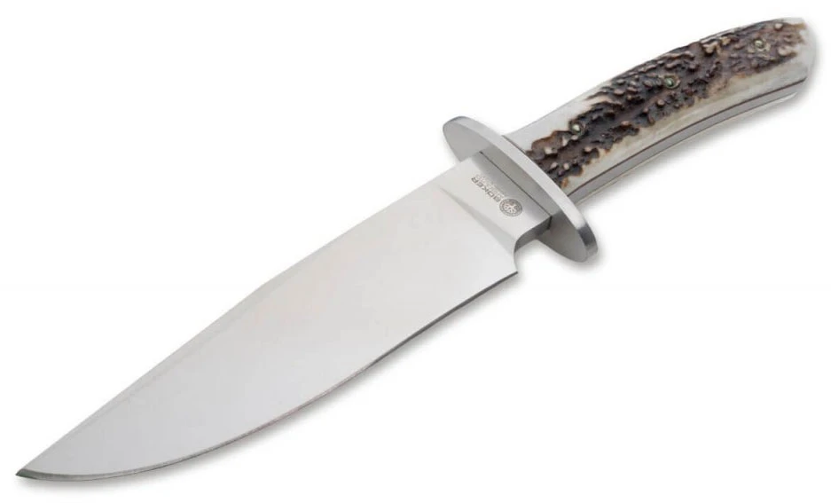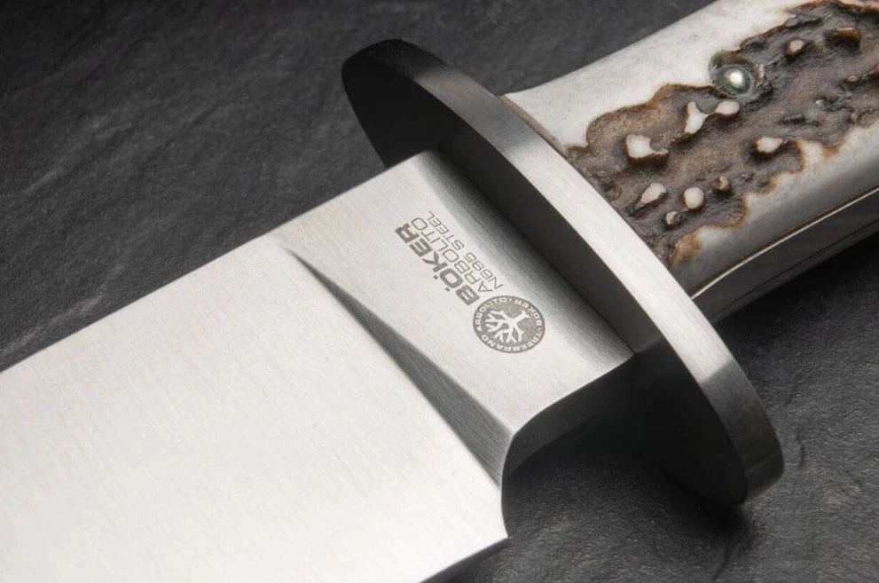 Boker Arbolito Esculta Hirschhorn – je lovecký nůž s pevnou čepelí tradičního designu se střenkami z parohu. Jeho vhodný pro lovce, myslivce, milovníky bushcraftu. Čepel je robusní, z nerezové oceli N695, která je odolná proti opotřebení, vyštípání zubů atd. Povrchová úprava je Stonewash. Čepel prochází celým nožem, má konstrukci full tang, takže je velmi stabilní a odolný.