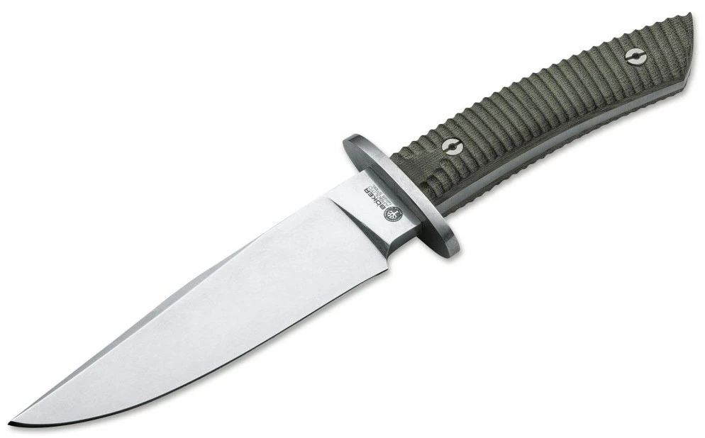 Boker Arbolito Esculta Micarta – je lovecký nůž s pevnou čepelí. Jeho vhodný pro lovce, myslivce, milovníky bushcraftu. Čepel je robusní, z nerezové oceli N695, která je odolná proti opotřebení, vyštípání zubů atd. Čepel prochází celým nožem, má konstrukci full tang, takže je velmi stabilní a odolný.