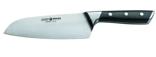 Čepel má hladké ostří a je vyrobená z kvalitní nerezové oceli X50CrMoV15. Konstrukce čepelí usnadňuje broušení. Nůž je kovaný, proto je při práci velmi stabilní a výborně přenáší sílu.