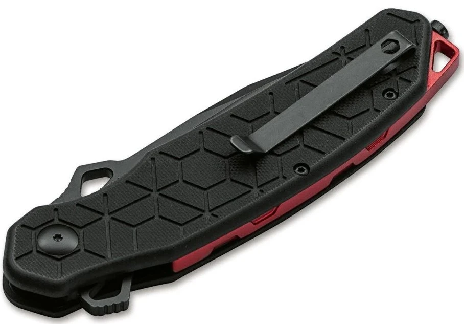 Nůž má otvor na šňůrku, klip na přichycení do kapsy či za opasek a hrot na rozbíjení skel.