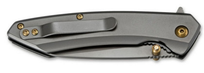 Nůž má pojistku Linerlock. Zvláštní design kování ve zlaté barvě dodává kapesnímu noži velmi exkluzivní vzhled, který umocňují ornamenty na tmavě modré rukojeti.