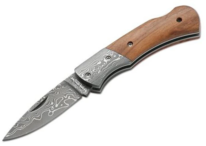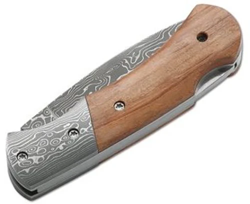 Boker Magnum Damascus Mistress – ušlechtilý kapesní nůž s čepelí z Damaškové oceli tvořené z 71 vrstev. Rukojeť je vyrobena z velmi kvalitního olivového dřeva. Nůž se otevírá pomocí drážky na nehet. Pojistka typu Backlock zajistí nůž v bezpečné poloze při jeho používání.