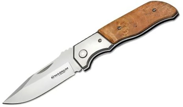 Boker Magnum Forest Ranger 42 – kapesní nůž s obouručním otevíráním. Čepel je nerezové oceli 440A a je dlouhá 9,8 cm Pojistka Linerlock proti nechtěnému zavření nože.