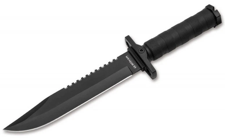 Boker Magnum John Jay Survival Knife – je robusní taktický nůž s pevnou čepelí. Hodí se pro vojáky, bezpečnostní složky, bushcraft nebo různé školy přežití. Čepel je z nerezové oceli 7Cr17MoV. Je černěná aby na ní nevznikaly odlesky. Má na hřbetu pilku
