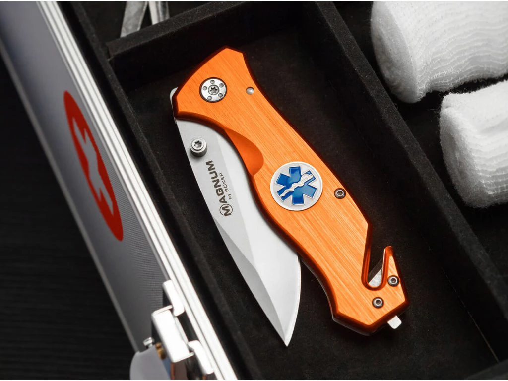 Boker Magnum Medic – záchranářský nůž s hladkou čepelí. Tento kapesní nůž se hodí do nouzových situací, je vybaven rozbíječem skel i řezačem pásů. Stabilitu nože zajistí pojistka typu Linerlock. Nůž má klip na přichycení do kapsy či za opasek.