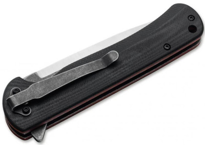 Nůž má otvor na šňůrku a klip na přichycení do kapsy či za opasek.