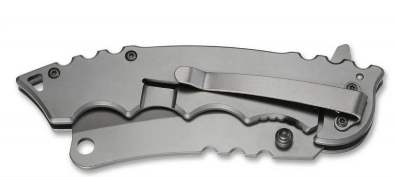 Nůž má pojistku Framelock. Na rukojeti má vyobrazenou lebku.