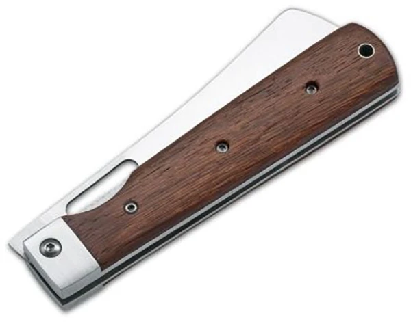 Boker Magnum Outdoor Cuisine III – kapesní nůž s japonskou čepelí Nakiri vhodný na kempování, piknik, na přípravu jídla v přírodě. Čepel je z nerezové oceli a v otevřené poloze je zajištěna pojistkou Linerlock. Rukojeť je z růžového dřeva, má otvor na šňůrku.