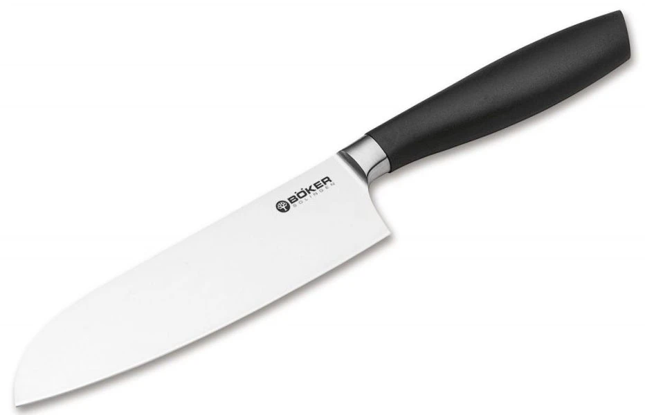 Boker Santoku Core Professional 16,3 cm : je univerzální kuchyňský nůž populárního santoku tvaru, který je vhodný do profesionální kuchyně. Je určený ke zpracování masa, ryb, ale dokážete s ním krájet cibuli i zeleninu nebo ovoce, případně pečivo, utřít česnek.