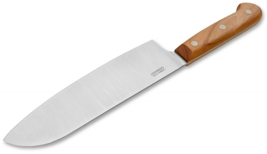 Délka čepele je 16 cm. Čepel má hladké ostří a je dostatečně široká, které bude dobře krájet. Je vyrobená z uhlíkové oceli, která se dobře brousí a má zajímavou řeznost.