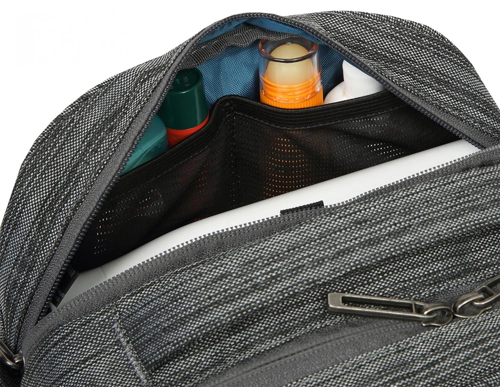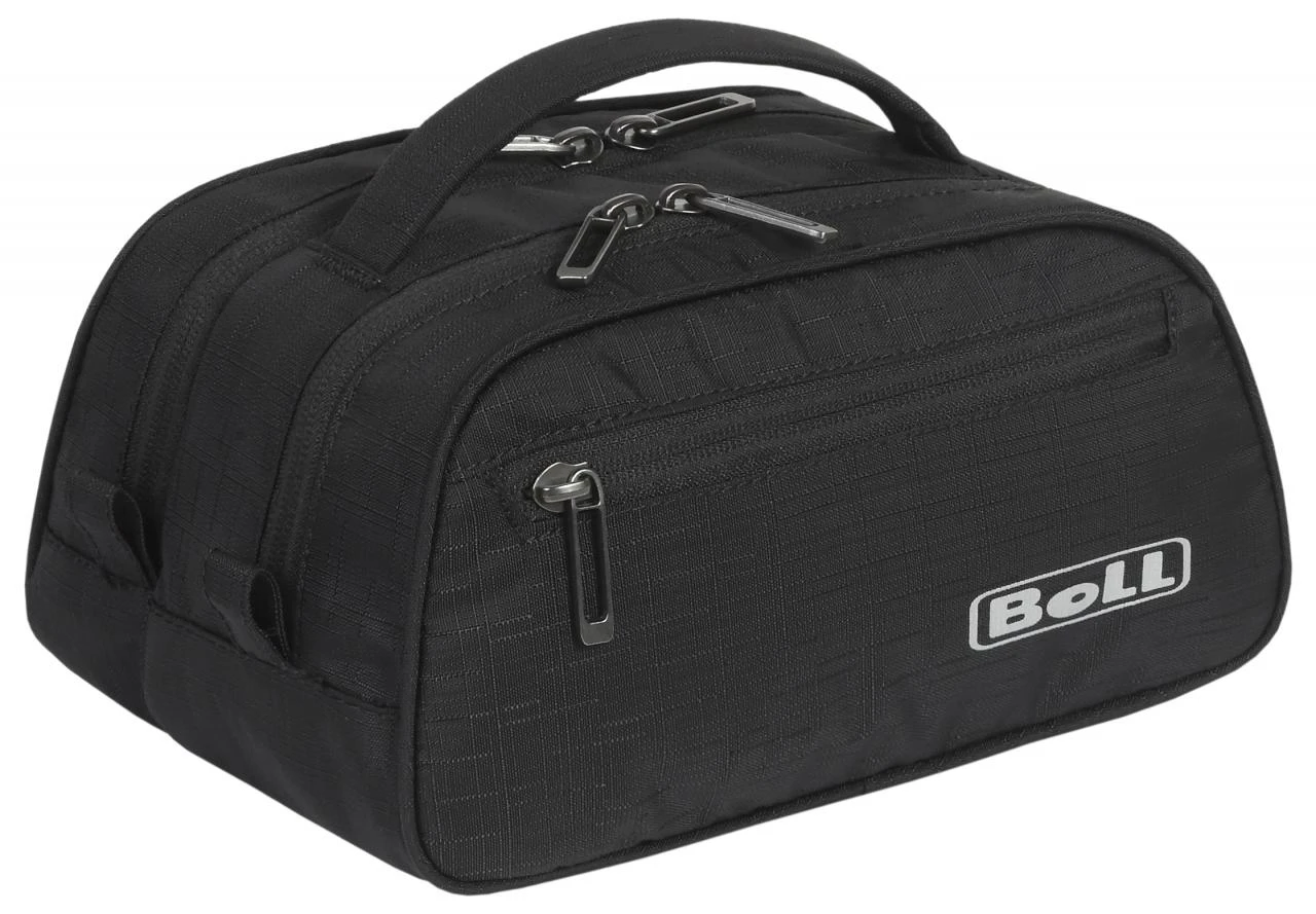 Boll Toiletry Case: rozměrná toaletní taška rozdělená do dvou komor, kdy každá komora má dalších 8 kapsiček na vše potřebné. Na obou stranách je ještě další kapsa na zip. Taška je tak velmi přehledná. Taška se hodí na více denní cestování. Lze využit i jako kombinace toaletní tašky a lékárničky.